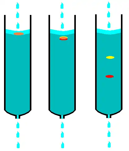 Column chromatography, like gas chromatography, uses a tube packed with a stationary phase, but the mobile phase is a liquid instead of a gas (It is sometimes known as 'liquid chromatography or LC). Instead of temperature gradients, a gradient in the composition of the liquid phase can be used to separate components.