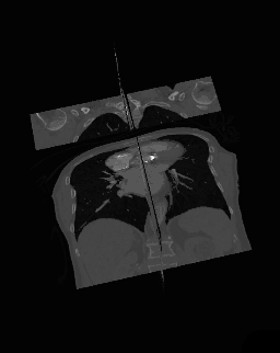 - Here a virtual camera can be located within the 3D image data to generate images of internal surfaces from an internal perspective. This technique can be used for Virtual Colonoscopy, for example, to generate images somewhat similar to those from optical colonoscopy procedures. Three MPR views can be used to define the location and orientation of the virtual camera and sequences of such images can be blended to provide a virtual Fly-Through through the region of interest. Such movies can also be generated from both internal and external camera locations to produce a virtual tour of the 3D image data, as illustrated in the movie below.
