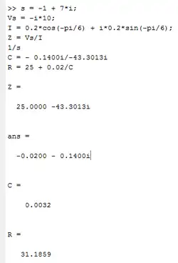 At this point, it seems like there is one equation with two unknowns (R, C). But in reality there are two equations. The real part of the right has to equal the real part on the left. The imaginary on the right has to equal the imaginary on the left. Unfortunately, the values of and will determine the next step.