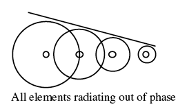 The radiating elements in the above illustration can be placed such that they reinforce one another along the array axis, or not. An end fire pattern is recreated when they reinforce.