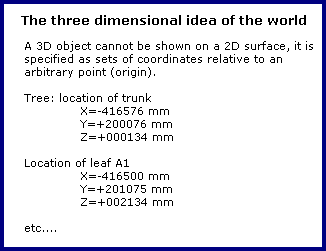 It is well known that a 3D object cannot be shown on a 2D surface. Its form is specified as sets of coordinates.