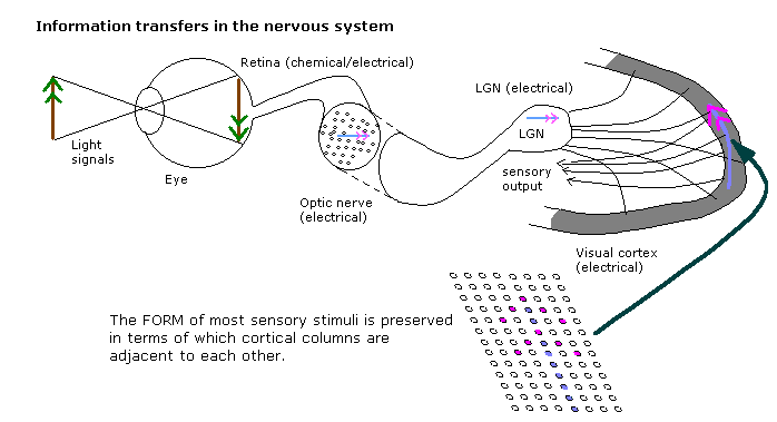 The spatial encoding in the brain generally preserves the relation of what is adjacent to what in the sensory field. This allows the form (geometry) of stimuli to be encoded.