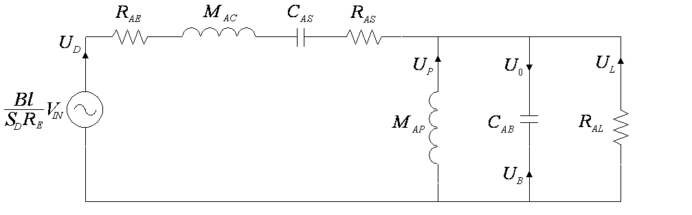Figure 2. Bass-reflex enclosure acoustic circuit.
