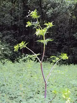 ![]() purple-stemmed angelica The Eurasian species Angelica sylvestris (woodland angelica) has apparently become established in southeastern Canada and is being tracked by iMapInvasives in New Hampshire, New York, New Jersey, Vermont, and New Brunswick.[2]