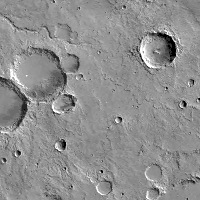 Older landscape on Mars with numerous impact craters. Small channels indicate the possible presence of water in the past, which may have smoothed out the surface. Image courtesy of NASA.