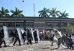 A riot is a form of civil disorder characterized by disorganized groups lashing out in a sudden and intense rash of violence, vandalism or other crime. While individuals may attempt to lead or control a riot, riots are typically chaotic and exhibit herd-like behavior. Riots often occur in reaction to a perceived grievance or out of dissent. Historically, riots have occurred due to poor working or living conditions, government oppression, taxation or conscription, conflicts between races or religions, the outcome of a sporting event, or frustration with legal channels through which to air grievances. Riots typically involve vandalism and the destruction of private and public property. The specific property to be targeted varies depending on the cause of the riot and the inclinations of those involved. Targets can include shops, cars, restaurants, state-owned institutions, and religious buildings.