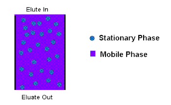 In column chromatography, when a protein sample is applied to the column, it equilibrates between the stationary phase and the mobile phase. Depending on the type of chromatography, proteins with certain characteristics will bind to the stationary phase while those lacking the sought characteristics will remain in the mobile phase and pass through the column. For example in ion exchange chromatography, a positively charged protein would bind to a negatively charged stationary phase, while the negatively charge protein will be eluted from the column with the mobile phase. The final step involves displacing the protein from the stationary phase, also known as elution, by introducing a particle which will compete with the protein binding site on the stationary phase. Today various commercial column are readily available, specifically Bio-Rad, Sigma-Aldrich,GE Healthcare and Omnifit offers a wide variety of chromatography column.
