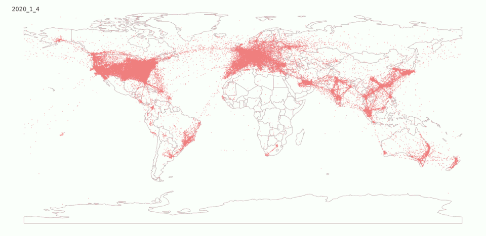 - ↑ Kuan, C. (2020). Visualization of Air Traffic during Covid-19 Pandemic. Retrieved from: https://towardsdatascience.com/visualization-of-air-traffic-during-covid-19-pandemic-c5941b049401