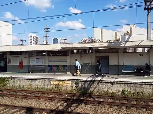 Água Branca is a train station on CPTM Line 7-Ruby, in the district of Água Branca in São Paulo, Brazil. In the future, it will be connected with São Paulo Metro/Move São Paulo Line 6-Orange and CPTM Line 8-Diamond and Regional Trains (Americana↔Santos and Sorocaba↔Pindamonhangaba).[1][2]