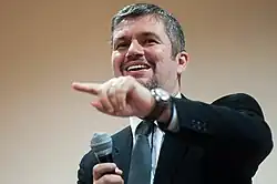 Ákos Ányos Hadházy (born 4 March 1974)[1] is a Hungarian veterinarian and politician. He was co-President of the Politics Can Be Different (Lehet Más a Politika; LMP) party from 2016 to 2018, and has been a member of the National Assembly (MP) from the party's National List since 2016, and an independent representative for Budapest 8th Constituency since 2022.[2][3]