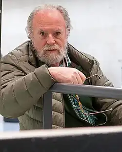 In 1945 d’Ors married Palmira Lois Estévez (1920-2003),[24] his student and daughter to a local Galician lawyer;[25] until 1961 they lived in Santiago de Compostela, and later on in Pamplona. The couple had 11 children,[26] born between the mid-1940s and the mid-1960s. Three sons became academics: Miguel d’Ors Lois in literature (Pamplona, Granada), though he gained some recognition also as a poet,[27] Javier in law (Santiago, León)[28] and Angel in philosophy (Pamplona, Madrid).[29] Daughters became local editors, historians or art critics;[30] one daughter was mentally impaired and passed away prematurely.[31] The best known of d’Ors’ grandchildren are Laura d’Ors Vilardebo, a photographer and art critic,[32] and Diego d’Ors Vilardebó, a musician.[33] Among Álvaro's nephews, a Catholic priest Pablo d’Ors Führer is a writer and Juan d’Ors Führer a musician. Both Álvaro's brothers served as requetés and one in Division Azul in Russia;[34] Víctor gained some nationwide recognition as an architect and author of related books.[35]