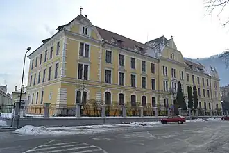 Áprily Lajos High School (Romanian: Colegiul Național "Áprily Lajos"; Hungarian: Áprily Lajos Főgimnázium) is a Romanian state school located at 4 După Ziduri Street in Centrul Vechi, a neighborhood of Brașov, Romania. The school educates children aged between 5 (grade 0) and 19 years old (grade 12). Named after Hungarian poet Lajos Áprily, the school is the only Hungarian-language high school in Brașov.