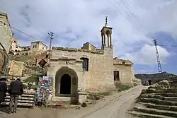 Çavuşin is a village in the Avanos District in Nevşehir Province in the Cappadocia region of Turkey.[1] Its population is 421 (2022).[2] It is on the road between Avanos and Göreme, about five kilometres north of Göreme. The older part of the village lies on and around a large ridge of rock visible for miles around. Most of the modern homes are closer to the main road where villagers were rehoused in the early 1960s amid fears that their old homes might collapse.[3] Until recently Çavuşin was more or less ignored by tourism despite its proximity to the Göreme honeypot. However, in the 2010s more hotels opened in Cavuşin too, especially in the older part of the village.