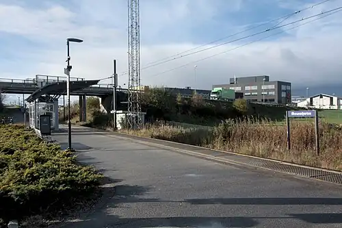 Øksnevadporten Station or Øksnavadporten Station (Norwegian: Øksnevadporten holdeplass) is a railway station located in Kvernaland in Klepp municipality in Rogaland county, Norway. The station is located on the Sørland Line. The station is served by the Jæren Commuter Rail between Stavanger and Egersund. The station is 22.42 kilometers (13.93 mi) south of the city of Stavanger.[1][2][3]