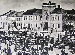 ![]() The market square in Łomża before the two world wars | |