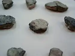 Thirty of the forty-six fragments of pottery, all from the same vessel, had carbonized residues, suggesting its use for the cooking of foodstuffs.[3] Eight AMS radiocarbon dates were generated from five of the fragments and three pieces of associated charred wood; these suggested a date of 11,800 to 11,500 BC.[3] With calibration, this dating was pushed back to 14,500 to 14,000, as early as around 16,500 BP.[3] Other datings have given a range between 13780 ± 170 and 12680 ± 140 BC.[10] This makes the Odai Yamamoto I site important to the understanding of the transition between the Pleistocene and the Holocene.[3] In recognition of their importance, the excavated artifacts have been designated a Municipal Cultural Property.[11]