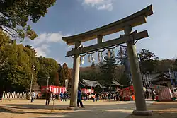 This shrine is near Miki station on the Ao Line of Kobe Electric Railway.