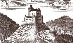 Žovnek Castle (Slovene: Žovnek, German: Sanneck) is a castle northeast of Braslovče, Slovenia. It lies above Lake Žovnek. The Lords of Žovnek, later Counts of Celje, were named after the castle. The castle was first mentioned in 1278 as Castrum Sevnekke, and later as Sannegg.