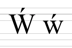 W with acute (majuscule: Ẃ, minuscule: ẃ) is a letter of the Latin alphabet formed by addition of the acute diacritic over the letter W. In the past, it was used in Lower Sorbian and Middle Polish.[1][2][3] Now it is used in the Welsh orthography as an accented form of w, e. g. gẃraidd 'manly'.