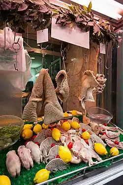 This Neapolitan culinary specialty is prepared by boiling pigs' feet with calves' snouts. The ingredients are depilated, boiled, cooled, cut into small pieces and served cold, seasoned with salt and lemon juice.