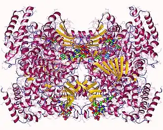 ![]() 3,5-dihydroxyphenylacetyl-CoA 1,2-dioxygenase hexamer, Streptomyces toyocaensis | |||||||||