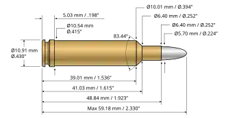 | Bullet diameter | .224 in (5.7 mm) | |||||||||||||||||||