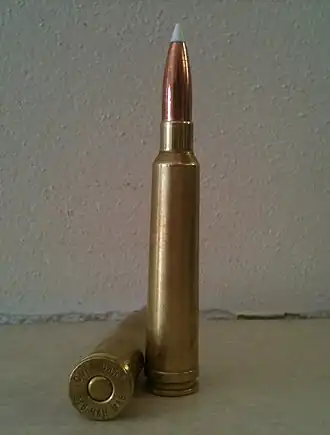 Aside from the belted case, the .275 H&H was very similar to the .276 Enfield cartridge of the Pattern 1913 Enfield rifle then under development by the British military to replace the Lee–Enfield. Cordite loadings gave both cartridges a reputation for unpleasant muzzle flash and short barrel life.[1] Western Cartridge Company offered United States loadings of the .275 H&H Magnum in 1925 with the .300 H&H and the .375 H&H. The .275 H&H was omitted when Winchester Repeating Arms Company started chambering their Winchester Model 70 rifle for the other two in 1937. The .275 H&H offered little ballistic advantage over the .270 Winchester with contemporary smokeless powders.[2] U.S. ammunition production ceased during 1939.