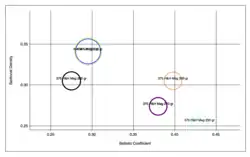 Bullets weighing 325–350 gr (21.1–22.7 g) will have sectional densities between .330 and .356. These bullets can be launched at velocities between 2,380–2,470 ft/s (730–750 m/s) giving these bullets greater penetration than a 500 gr (32 g) .458 bullet at 2,240 ft/s (680 m/s).