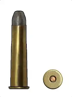 Winchester Repeating Arms Company necked down the .45-60 Winchester cartridge to hold a bullet with improved ballistics for the Winchester Model 1876 rifle.[2] The lever-action Model 1876's advantage of faster loading for subsequent shots was eclipsed two years later by the stronger and smoother Winchester Model 1886 action capable of handling longer cartridges with heavier bullets.[5]