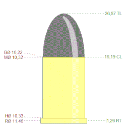 Bullet diameter.402 in (10.2 mm)