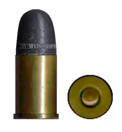 This revolver cartridge was introduced to the American market for the New Line S A. revolver in 1873. The cartridge has a larger edge diameter than the cartridges of newer designs for trigger-tension revolvers. It can be used in these weapons, but it is necessary to charge every other chamber. After the introduction of revolvers with trigger tensioning, the production of this cartridge was terminated. The .41 Short Colt could be used in revolvers chambered for .41 Long Colt interchangeably. Both cartridges originally had an outside lubricated bullet with a small diameter heel fitting the neck of the case.[1]
