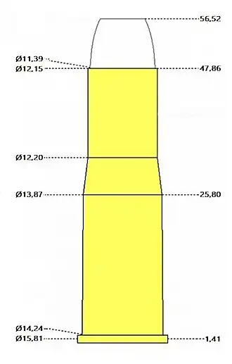 Bullet diameter0.4575 inches (11.62 mm)[3]