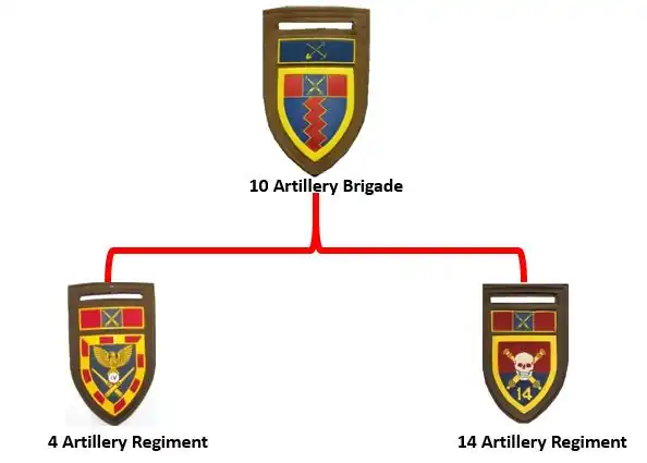 10 Artillery Brigade[1][2][3] was formed in Potchefstroom in 1983, when 4 Field Regiment[4] and 14 Field Regiment[5] were both incorporated as 4 Artillery Regiment and 14 Field Artillery Regiment. 4 Artillery Regiment was located to the old 14 Field Regiment base where the Brigade was established. It provided the base and training facilities as well as National Servicemen gunner training between each regiment on an annual basis.