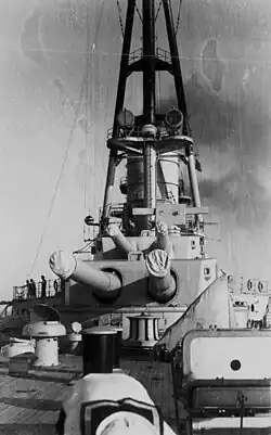 The gun was designed in 1910, and it was probably based on the US 12"/50 (30.5 cm) Mark 7 naval gun with a breech weight added. The guns were manufactured at the Bethlehem Steel Corporation.[1] Twelve 305 mm guns were mounted in six twin (2-gun) turrets, two in front, two behind, and one on each side, on each of the ships in the class.