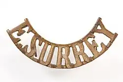 ![]() Cap badge of the 13th East Surreys, incorporating the arms of Wandsworth | |