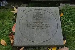 More recent memorial tablets have been placed in the garden at Wandsworth Town Hall. These include one to the 13th East Surreys, 'The Wandsworth Regulars', unveiled on 26 September 1964.[103][106] The 13th and 14th (Wandsworth) Bns, East Surreys are listed on the adjacent tablet to Wandsworth Army Units 1914–45, placed on 1 February 2008.[103][107] Nearby there is a VC plaque to Cpl Edward Foster[108] and he is listed on the tablet to VC and GC winners from the borough.[109] A new footpath through King George's Park in Wandsworth was named 'Fosters Way' in his memory on 8 May 1995.[52][103]