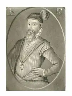 During the late 16th century, Haverfordwest had a population of around two to three thousand, of which one hundred were burgesses, who bore the right to vote.[1] It was politically dominated by a few individuals, most notably Perrot, who was supported by the local gentry, and opposing him, the antiquarian George Owen of Henllys, and John Barlow of Slebech, who had come into conflict with Perrot due to a land dispute.[2] Perrot himself had grown up in the area, his boyhood home being at Haroldstone, and he had been Mayor of Haverfordwest in 1570, an office which he also held in 1575 and 1576.[3] Prior to the events of the 1571, Perrot held a virtual monopoly of power - all the borough offices were held by his supporters, including the mayor, John Voyle, and the sheriff, Edmund Harries.[2] The Sheriff acted as returning officer, and thus was capable of illicitly influencing the result.