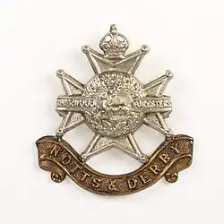 Apart from the Sherwood Foresters' cap badge and 'NOTTS AND DERBY' brass shoulder title the 15th Battalion wore no special badges for most of its service. However, towards the end of World War I it probably began wearing the second version of the 35th Divisional sign with a circle of seven '5s'.[53][116]