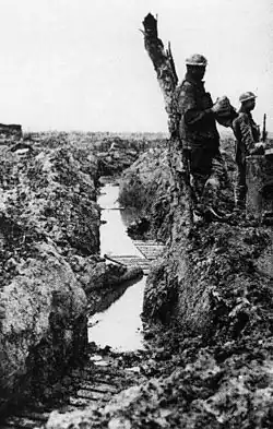 A typical waterlogged trench in the 1917 Ypres offensive.