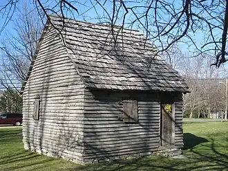 The 1753 House was built only with materials, tools, and methods that would have been used in 1753. The house was originally erected in Field Park but was relocated to its current location in 1996.[2] The 1753 House closed in 2010 due to chimney damage, but reopened in November 2012 with a ceremonial fire lighting in the new chimney.[2]