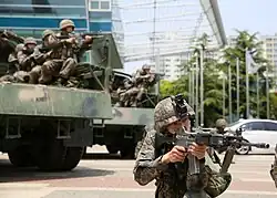 Soldiers of the 17th Infantry Division during anti-terror training in Incheon.