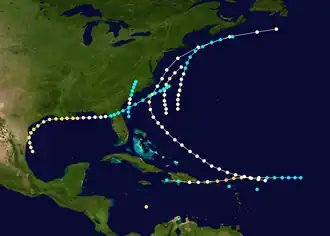 - ^ a b c d e f g h i j k Chenoweth, Michael (December 2014). "A New Compilation of North Atlantic Tropical Cyclones, 1851–98". Journal of Climate. 27 (12). American Meteorological Society: 8674–8685. Bibcode:2014JCli...27.8674C. doi:10.1175/JCLI-D-13-00771.1. Retrieved February 5, 2025.