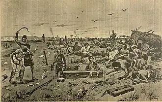 ![]() Lithography depicting war prisoners and Paraguayan families captured and tortured in San Fernando | |