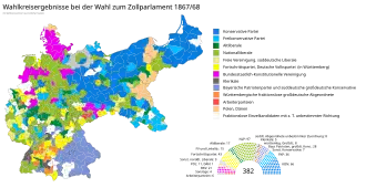 Elections to the Zollparlament of the German Zollverein were held in February and March 1868. The Zollparlament consisted of the members of the Reichstag of the North German Confederation and members from the South German states. Those South German members were elected in these elections, the North Germans were the Reichstag members elected the previous year.