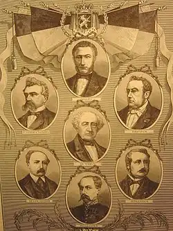 The Belgian ministry in 1872, de Theux in the centre, from L'Illustration Européenne 1872, no. 22, p. 173