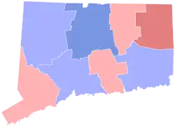 Lounsbury: 40–50% 50–60% 60–70% 70–80% Snow: 40–50% 50–60% 60–70% 70–80% | |||||||||||||||||