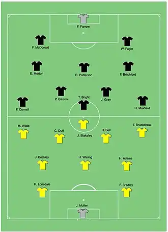 Caledonian: GK H.Eddis, DF W.McCormick, John Hood, MF J.Lindsay, John Hearne, W.McNeil, FW J.McWilliams, J.Low, S.Hood, R.Barr, James Hearne.