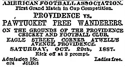 December 3, 1887 Fall River Rovers 3–0 Pawtucket Free Wanderers Fall River, MA