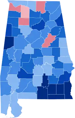 | Autauga | 893 | 63.24% | 519 | 36.76% | 0 | 0.00% | 374 | 26.49% | 1,412 | ||