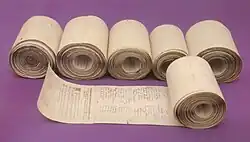 The 1893 Women's Suffrage Petition was notable both for the number of signatures it contained and its physical size. It was made from 546 individual sheets of paper, joined together to form a continuous roll. This resulted in a document measuring 274 meters in length,[16] and weighing over 7 kilograms.[17] For ease of presentation, the massive roll was wound around a broomstick. [18]